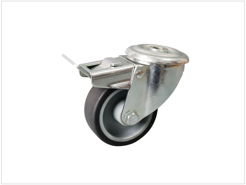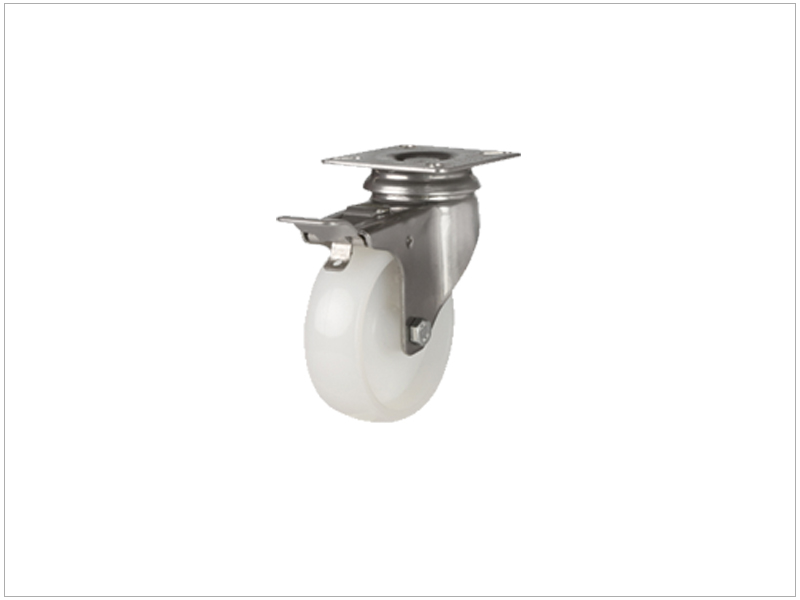Swivel Castor(with locls) made of pressed steel, bright zinc plated, double ball bearing swivel,wheel axil with nut. Wheel diameters:2" to 8" available Load Capacity : 75kg to 500kgs
